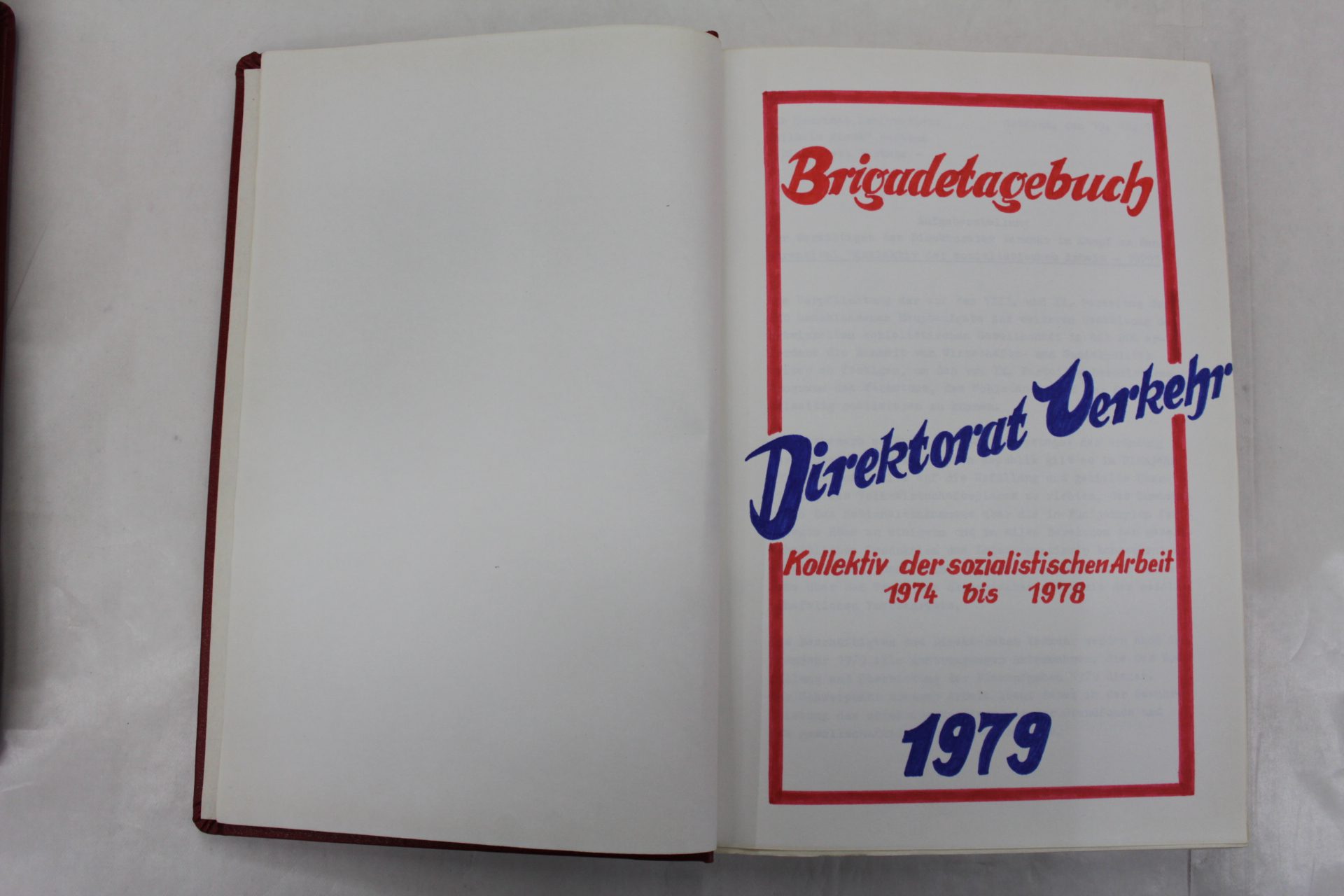 The ”Brigadebuch” or ”Brigadetagebuch” was a diary that every collective in East German enterprises had to create yearly. The term ”Brigade” has its roots in the Russian language, where it draws its meaning as a unit of co-workers.