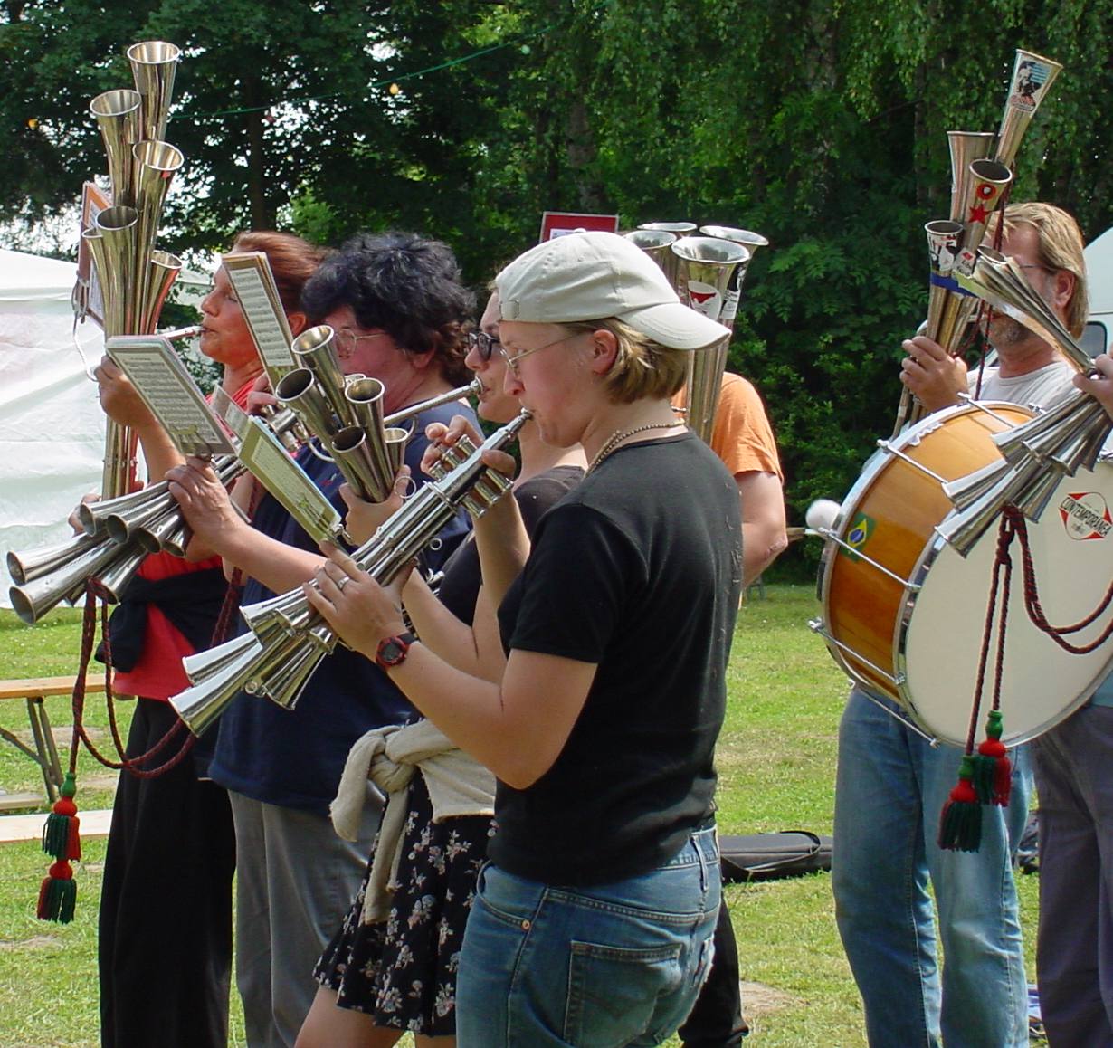 Looking as if it could usher in the Last Judgment, this musical instrument actually plays a rather amiable part in the history of the GDR. Schalmei (shall-my) bands were formed in factories, communities, schools and paramilitary garrisons, and they also competed under the auspices of the FDJ on the regional and national level. If there is a contemporary heartland for the Schalmei since the Wende, it is the region of former East Germany called “Vogtland”, in the southwest corner of Thuringia near Plauen or Gera where the Schalmei tradition is still very much alive in smaller towns.