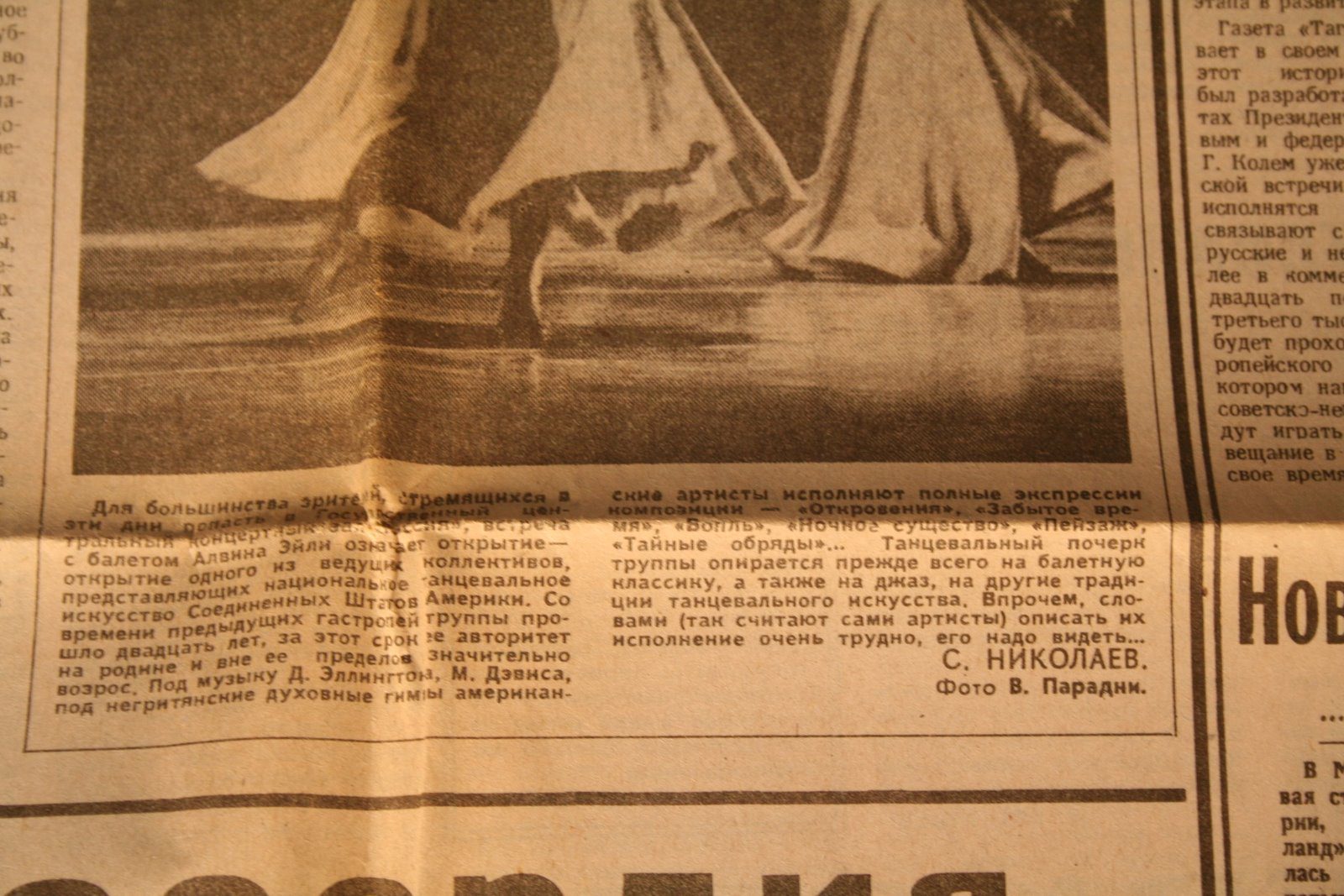 The article in Pravda, “Twenty Years Later” celebrated the return of the Alvin Ailey dance company. The front page showed a photo of dancers performing the Alvin Ailey classic, “Revelations.” The text below complimented the artistry, technique, and expression of the dancers. The text also celebrated the return of an American dance company. This Alvin AIley performance in 1990, was the first contemporary dance performance performed in Russia in twenty years.