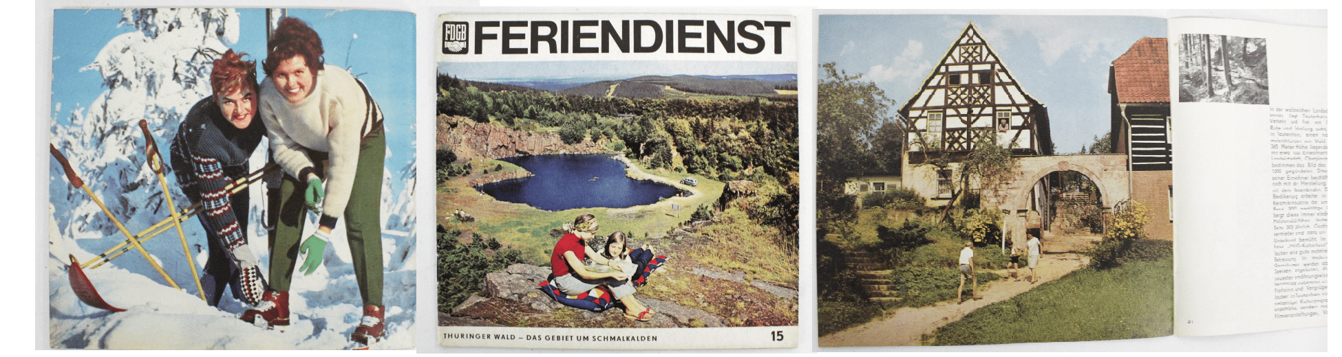After some reading, it became clear that travel in East Germany was at once both restricted and facilitated by the political circumstances of the day. In a country where labor was assigned a great deal of importance, travel was seen as a way to rejuvenate oneself for the return to work. Thus the state made provisions for its citizens to enjoy an appropriate amount of travel and leisure time. To begin with, the labor reforms of the 20th century ensured that the citizens of the GDR had much more vacation time than they had historically, rising from 6 to 18 days during the country’s existence. Furthermore, state travel agencies like Reisebüro and union groups like the Freier Deutscher Gewerkschaftsbund (FDGB, or Free German Trade Union Federation) helped to organize travel that was relatively easy and affordable, albeit to a limited number of locations. Large factories often operated their own resorts, which were available to workers at any level of the firm for a reasonable price.