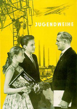 Jugendweihe is a way to enter the world of adults with a nice, big celebration without any church affiliation. It was made popular through the communist party as a secular alternative to church confirmation. It was not, however, invented by the communist party. Jugendweihe has its roots in the labor movement of the 19th century. There is still great controversy between the church and Jugendweihe in Germany. Each year there are twice as many adolescents that go through Jugendweihe than there are that go through confirmation. The church, rightly so, feels that it cuts into the amount of new “believers” that pass through its pearly gates each year and therefore try to label Jugendweihe as an old communist past time that should be eradicated. This is what has happened in West Germany as Jugendweihen are done almost exclusively in East Germany. It is not so much that there is still a split between east and west because of this, but rather that no one has heard of Jugendweihe in West Germany.