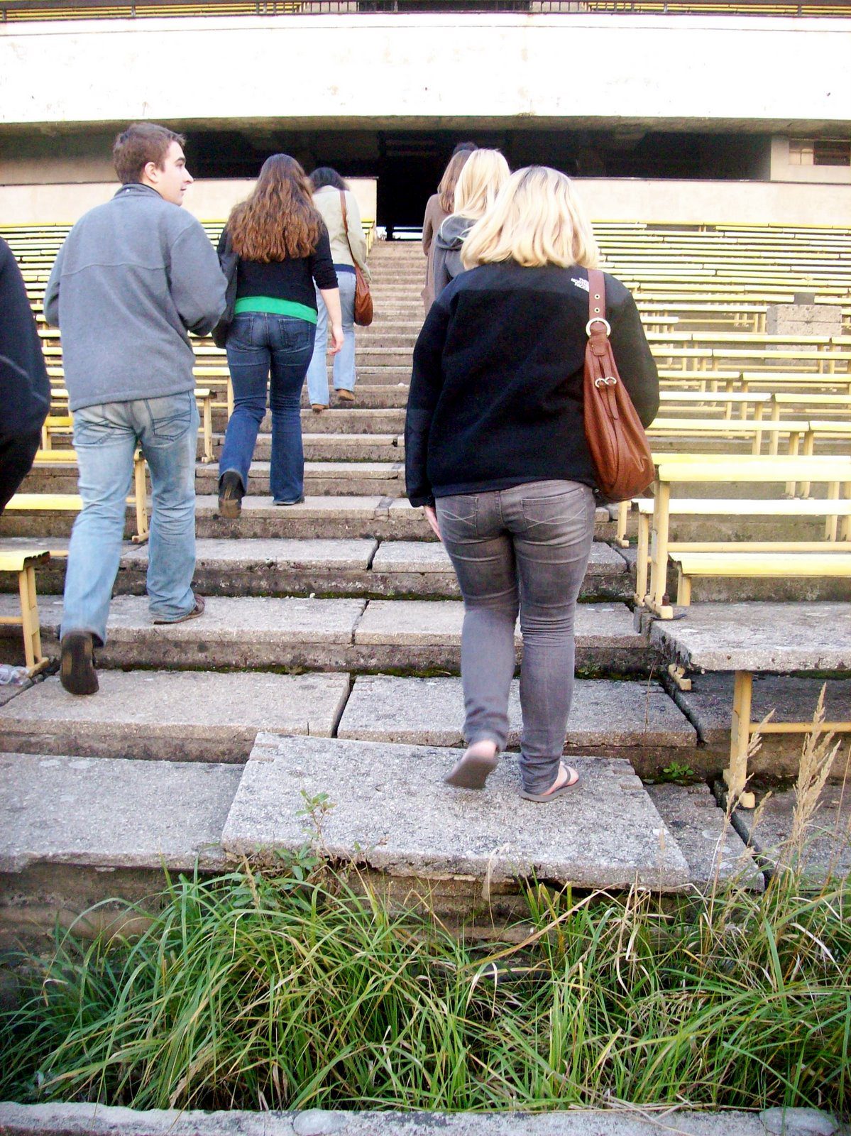 When a student asked my proffessor about the eventual fate of the stadium and if there are any plans for rennovation, his answer was that the city will most likely wait till the stadium is so rundown it can not be used as a practice soccer fields and becomes a safety hazard. Then the city will use that as an excuse to demolish it, but that answer could have been easily guessed from viewing the stadiums current condition. Although I felt no attachment to the stadium and did not feel the sense of nostalgia for the feelings of power, beauty, and community that came with the mass gymnastics displays that my proffesor admitted to feeling when he was up in the stands, I could not help but feel a sense of loss when I realized that without the fieldtrip I would have been living in Prague without ever knowing of it’s existance and that it most likely would not be there if I am ever to return. That is why I felt it fitting to write a blog post about it here, so that in some small way it can be remembered. I find it especially fitting to write about the Strahov Stadium on the intern blog for the Wende Museum, considering the Museum’s mission towards perserving and sharing Cold War history.