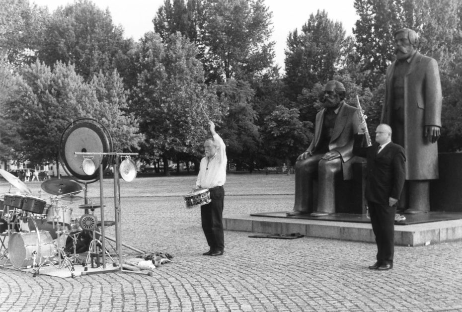 Ten years after the fall of the Berlin Wall, Böttcher revisited his own material, creating a filmic collage from his 1980s 35mm footage and new video material of visitors’ reception of this anachronistic monument. Günter “Baby” Sommer (percussion) and Dietmar Diesner (saxophone) interpret the space and images with their improvisational jazz.
